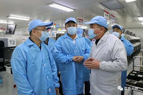 萬(wàn)卓培一行在大朗鎮(zhèn)相關(guān)負(fù)責(zé)人的陪同下,前往福日電子二級(jí)控股子公司廣東以諾通訊有限公司開展調(diào)研,深入企業(yè)車間,了解企業(yè)生產(chǎn)情況以及未來(lái)發(fā)展規(guī)劃,并就企業(yè)提出的生產(chǎn)經(jīng)營(yíng)中問題和困難進(jìn)行了交流。